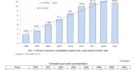 Виклад основних результатів дослідження. Окрім тих причин, про які йшлося перед цим, є ще декілька, що обумовлюють нашу зацікавленість до відповідної проблематики. По-перше, йдеться про інтенсивний та невпинний розвиток морських перевезень: пасажирських та вантажних. Підтвердження знаходимо на діаграмі (рис. 1). Як бачимо, їхній обсяг з 1990 р. по 2021 р. збільшився більш ніж удвічі: з близько чотирьох мільярдів тонн до 11 млрд тонн. Цю дивовижну динаміку можна порівняти хіба що з ціною на золото. У короткотерміновій перспективі під впливом тих чи інших чинників 1 вона зазнає коливань, інколи суттєвих. Але, якщо проаналізувати стан справ за довготривалий період часу, що минув, стає очевидним: кількість грошей, яку люди готові віддати за благородний метал іде лише в гору та в гору. Тому його й розглядають як бездоганний об’єкт для вкладання інвестицій з метою збереження, примноження капіталу, що набуває форму скарбу.