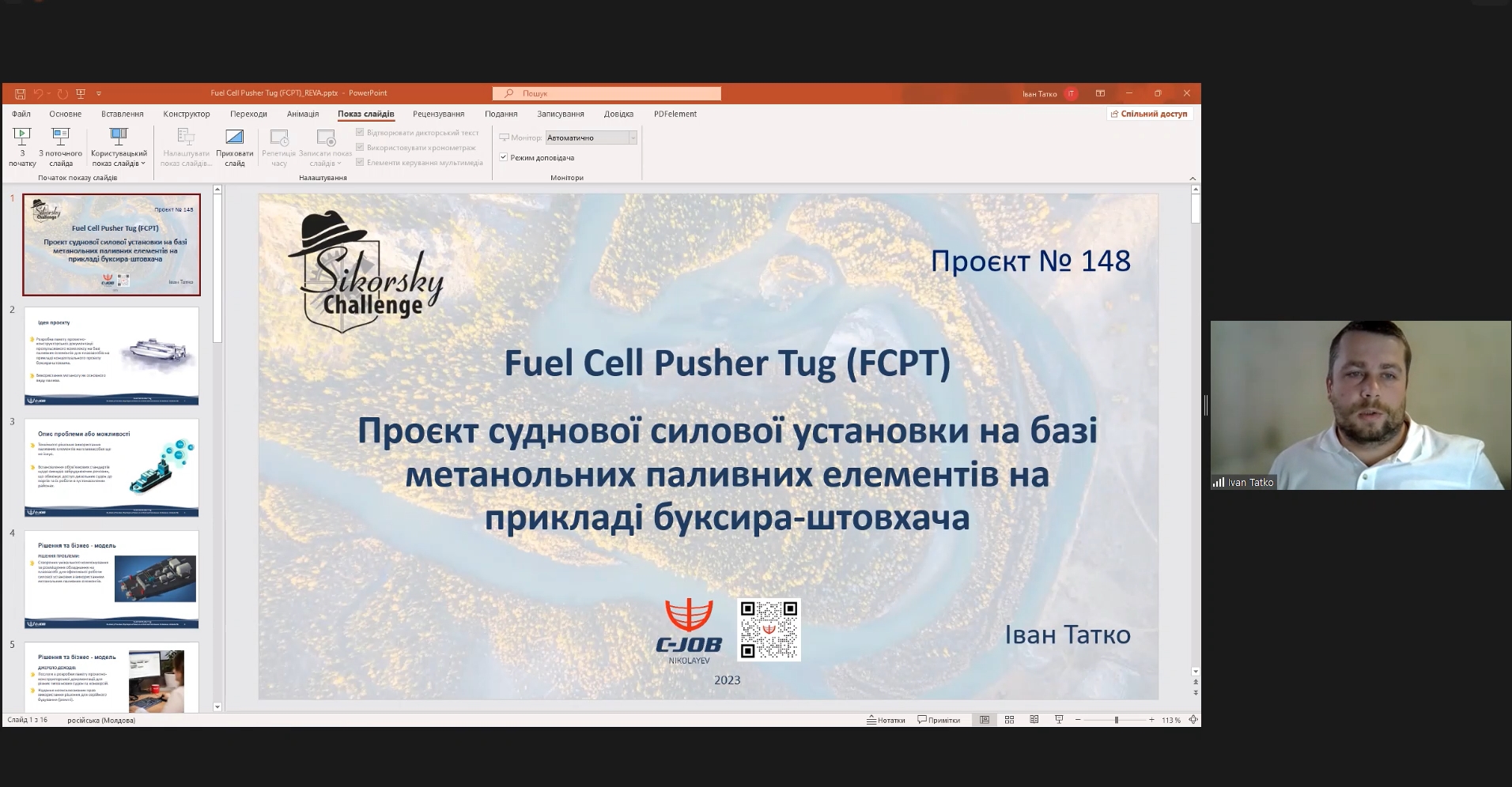 ТОВ «Сі-Джоб Миколаїв», в особі Івана Татько представили проект буксира з використанням паливних елементів (FCPT) як основного джерела електроенергії та метанолу як основного палива. Він спеціально розроблений для операцій на річці Дунай з урахуванням усіх навігаційних характеристик.