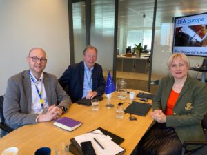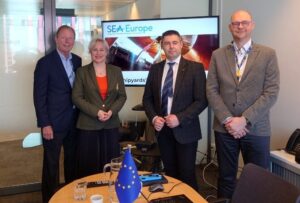 On May 31, 2023, a meeting between René Berkwens, Chairman of the European Association of Shipyards and Marine Equipment (SEA Europe), Christoph Titgat, Secretary General of SEA Europe, Artem Vashchylenko, Chairman of the Supervisory Board and Olena Zhukova, Executive Director of PU “UMC” was held in Rotterdam, Netherlands.