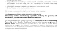 Також у квітні SEA Europe та Європейська асоціація судновласників (ECSA) оприлюднили спільну заяву, у якій закликали до конкретних дій у межах майбутньої Європейської промислової морської стратегії та Інвестиційного плану сталого транспорту. Основні рекомендації: