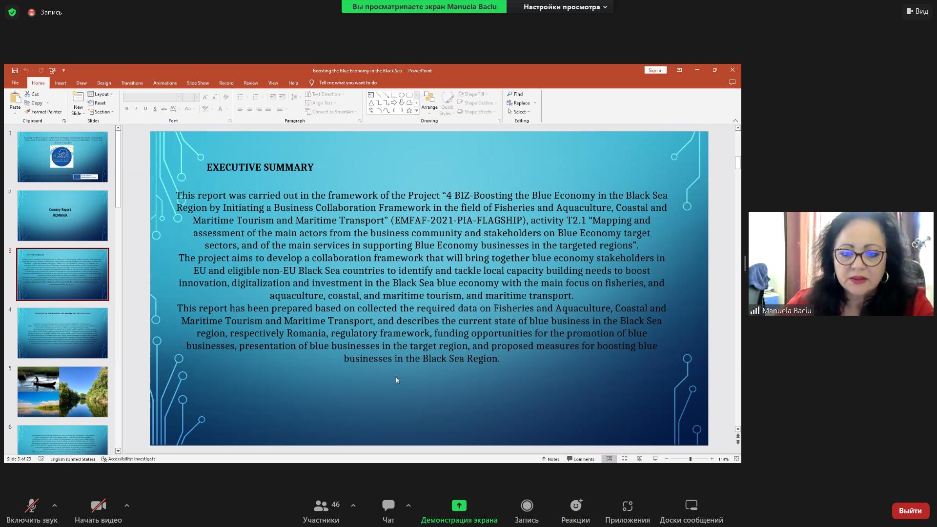 – Минулого місяця ми досягли важливого етапу, який полягав у завершенні процесу картографування поточного стану секторів блакитного бізнесу та складання звітів щодо секторів блакитного бізнесу в Румунії, Болгарії, Туреччині та Грузії і України. Наразі ми розповсюджуємо звіти країн у різні органи влади на національному рівні, а сьогодні, 17 березня 2023 року, ми організовуємо семінар 4BIZ для аналізу остаточних звітів країн, – проінформував проф. д-р Іден МАМУТ Генеральний секретар BSUN і координатор проєкту 4BIZ.