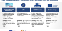 Програма «Горизонт Європа» є найбільшим фінансовим інструментом Європейського Союзу для підтримки досліджень та інновацій на період 2021–2027 років з бюджетом у 95,5 млрд євро. Вона надає можливості для малого та середнього бізнесу, зокрема фінансуючи інноваційні проєкти, дослідження та технологічний розвиток. Програма також підтримує міжнародне співробітництво та покриває витрати на інноваційну діяльність. Детальнішу інформацію та можливості для участі можна знайти на офіційному сайті програми Horizon Europe.