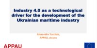 Alexandre Yurchak wrapped-up the series of presentation, involving the audience in the features of Industry 4.0 as a technological driver for the development of the maritime industry of Ukraine. The comprehensive report included the current course of the Industry 4.0 formation in our country, an overview of companies that joined the 4.0 movement, and internationalization processes lead by APPAU. Moreover, the experience of cluster approach applying in Ukraine and real existing EAM clusters (Engineering, Automation, Machinery), critical aspects of the positioning of Ukraine as a “service provider” for the EU and some examples of successful smart integration, as well as possible areas of cooperation were presented.