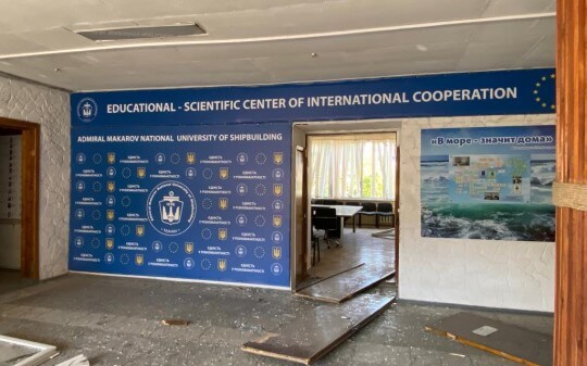 15 липня 2022 року в результаті терористичної атаки окупантів головний корпус Національного університету кораблебудування імені адмірала Макарова зазнав значних руйнувань. Після удару співробітниками унівреситету та комунальними службами були виконані роботи з усунення наслідків обстрілу. 10 жовтня, ворог вчергове обстріляв Миколаїв ракетами типу С-300, влучивши в будівлю університету вдруге.