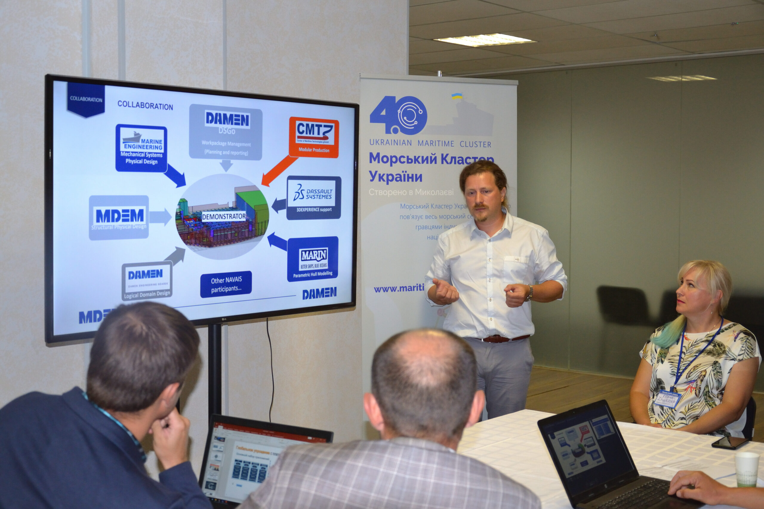 Станіслав Селезньов, представник мультисервісної інжинірингової компанії MDEM, що входить до Damen Group, виступив із доповіддю «NAVAIS based PLM introduction». Компанія MDEM бере участь у програмі Європейського Союзу NAVAIS (New, Advanced and Value-added Innovative Ships). Консорціум NAVAIS за участю класифікаційного товариства BV розробляє сімейство модульних продуктів за допомогою інтегрованої PLM платформи 3DEXPERIENCE. Це відкриває можливість для створення системи повного життєвого циклу судна на основі платформи 3DEXPERIENCE від компанії Dassault Systèmes. В презентації доповідач окреслив аспекти розвитку PLM на основі NAVAIS, серед яких: роль MDEM в проекті; планування NAVAIS та робіт PLM 3DX в компанії; спектр виконаних в PLM 3DX робіт; нові ролі та знання, продиктовані PLM; надбання знань та кооперація з учасниками проекту.