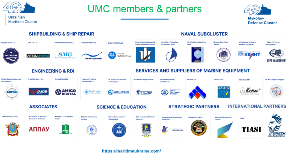 Спеціальний гість – виконавчий директор Морського Кластеру України Олена Жукова – представила присутнім Кластер, коротко розповіла про його заснування та історію розвитку, окреслила ініціативи кластеру, з огляду на перспективи співпраці в Чорноморському регіоні, зазначила поточні проекти. Наступна частина презентації була присвячена ключовим учасникам МКУ в галузі суднобудування та ремонту, військово-морському субкластеру, інжинірингу та R&D, послуг та постачальників, науки та освіти, асоційованим партнерам, а також партнерам по грантовим проектах. Доповідач наголосила на важливій події – підписання Меморандуму про співпрацю з Асоціацією «Укрсудпром», згідно з якою за обопільним членством буде залучено близько 50 представників української морської промисловості.